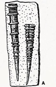 But one form we do commonly find is something of a mystery. Take a look at the strange creature in our illustration. It has a name; it’s called Tentaculites. But what on earth is it? That’s not obvious. A clam is a clam; a snail is a snail, but what is Tentaculites? We don’t have a good answer to that question; the animal is a puzzle. It was, no doubt an invertebrate and it must have liked tidal flats, we find so many of them there. But we will probably never figure out just exactly what it was. Do you have any ideas?