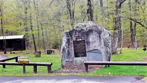 Have you ever seen the Devil’s Tombstone? It’s quite a rock—located at Devil’s Tombstone Campground on Rte. 214 near Stony Clove. It’s right next to the highway and there is good parking, so it is easy to get to. Its peculiar name is easy to explain; the rock looks so much like a very large tombstone. However, we doubt that the Devil is buried there.