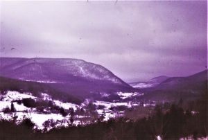 We hope that Gerry likes our hypothesis. It conjures up quite an image. We travel north on Rte. 30 to where we can park and see this view. In our mind’s eyes we can imagine the advance of these glaciers; we can watch them carve the shapes of Grand Gorge Gap. That view gives us a whole new perspective on this site.