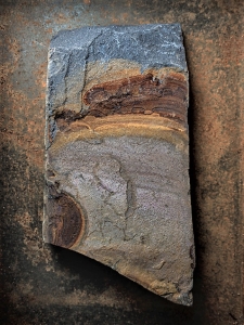 After a period of time, the water evaporated, and those minerals crystalized, left behind as the film we see on the surface of the rock. This was an initial step in the weathering of the rock. We are guessing all of this, but we like the story; it’s probably not all that far off. What’s most important is that we alert your eyes to watch for this sort of thing when you are out looking at rocks. We have more to write about weathering. Next week we will take it one step further along.